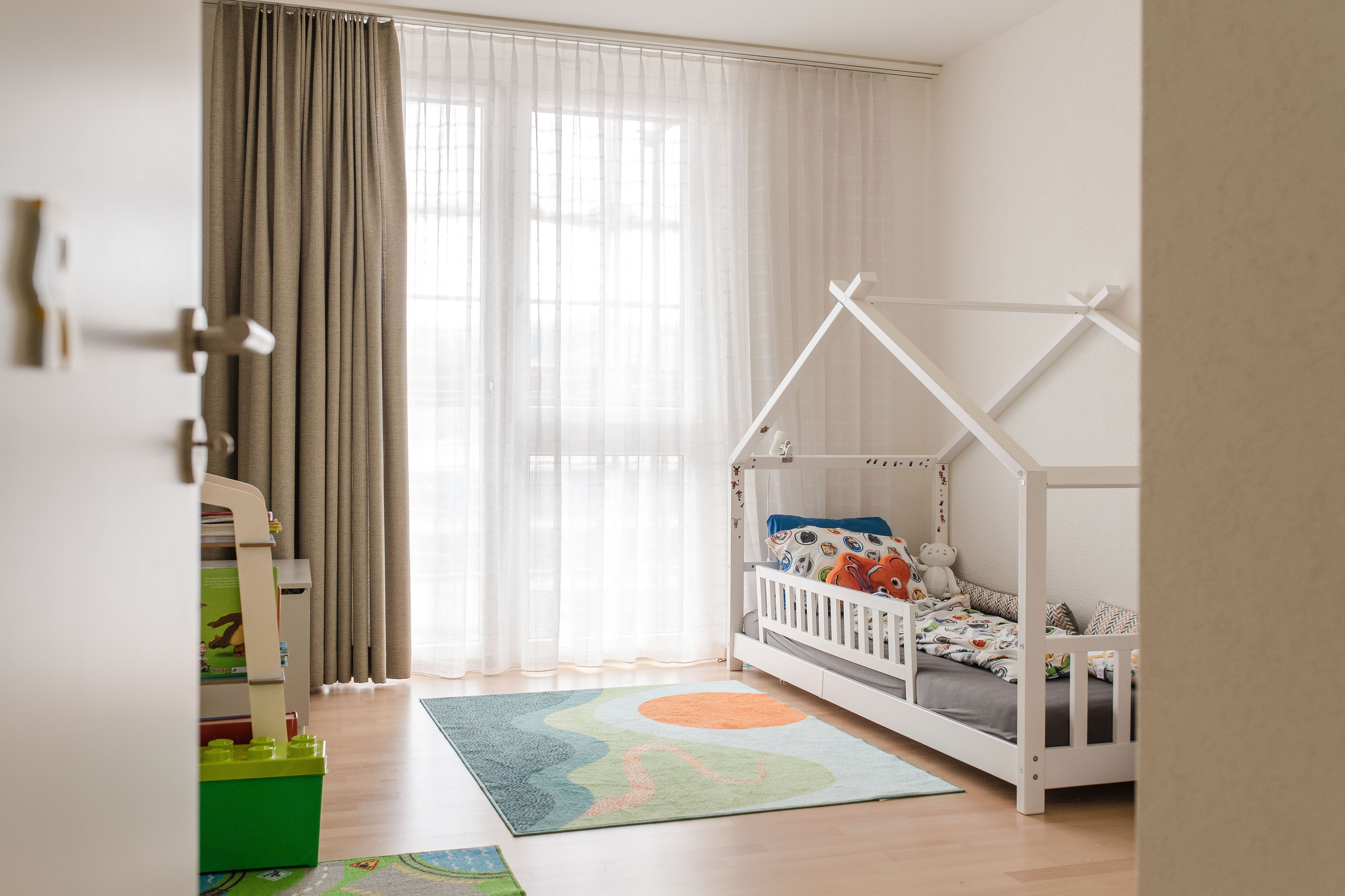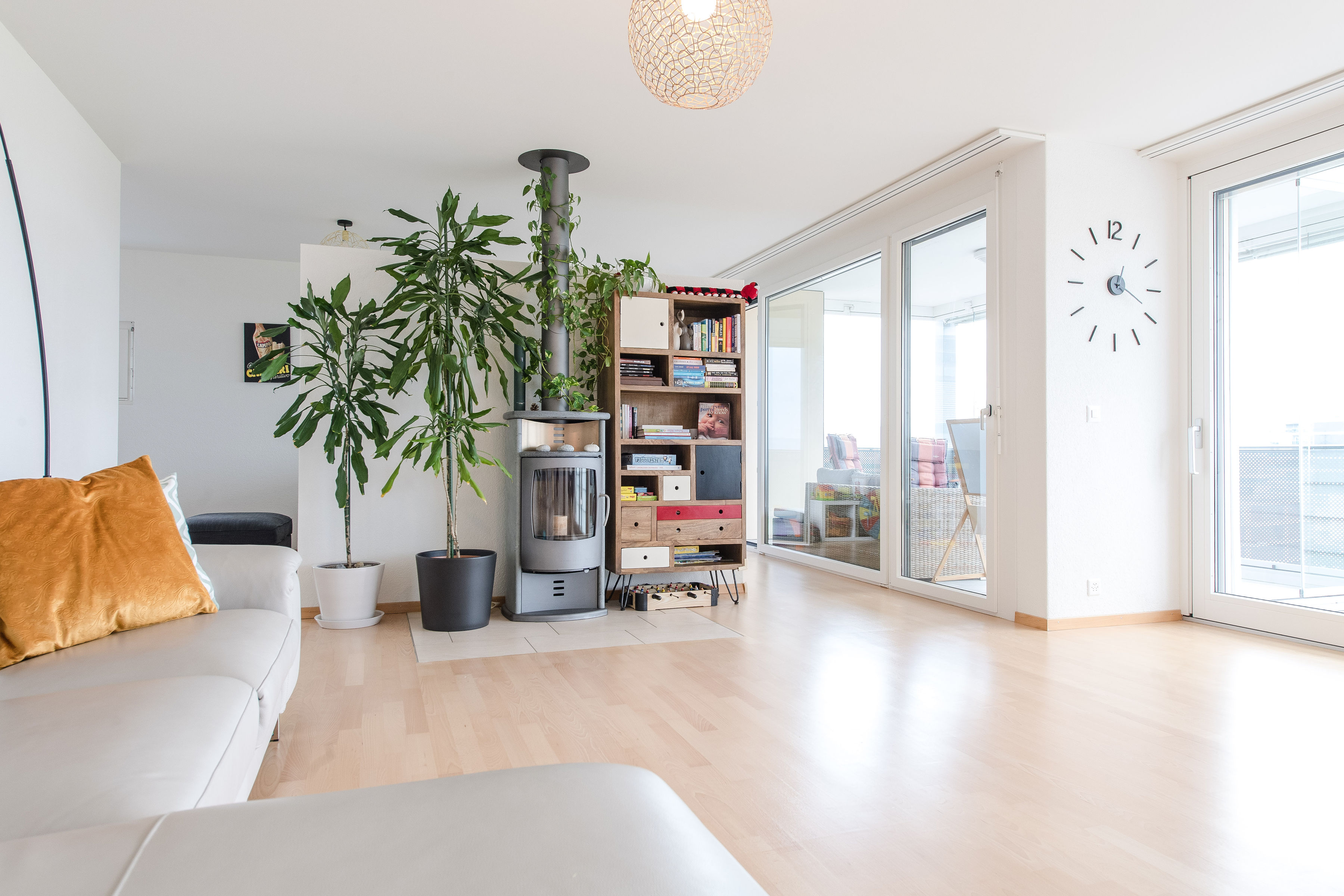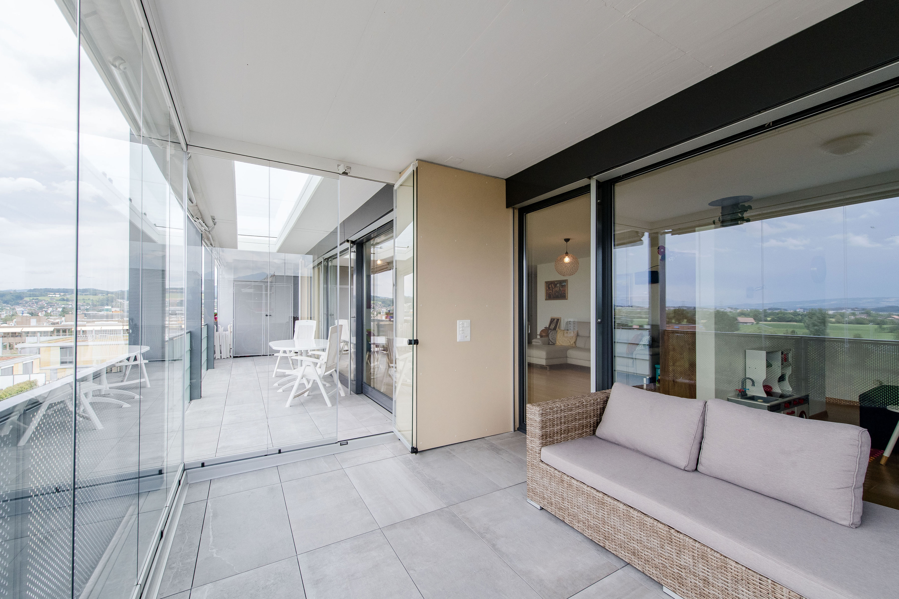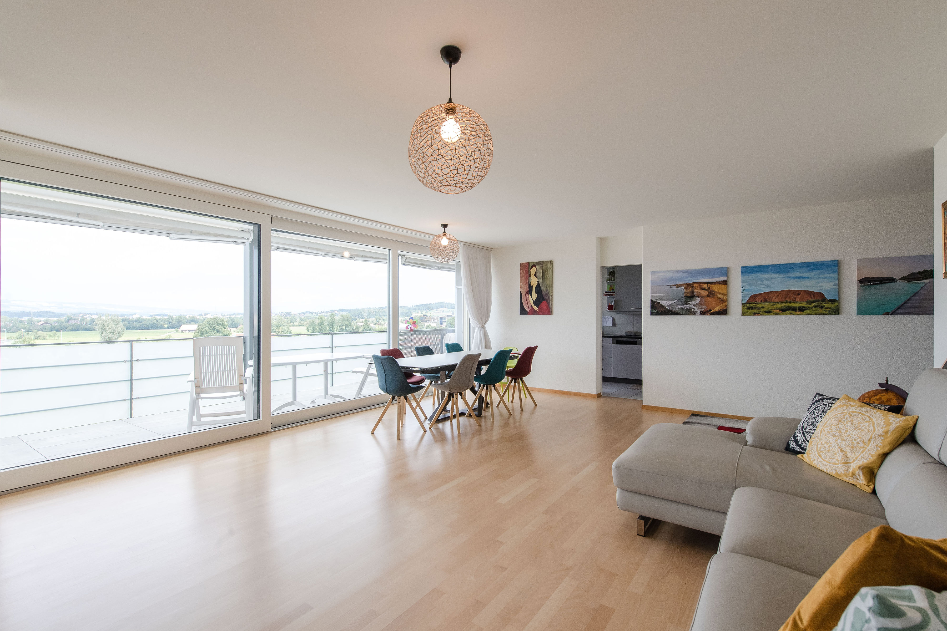 Innenaufnahmen Wohnung zum Verkauf. Luftaufnahmen von Standort mit Panorama.
